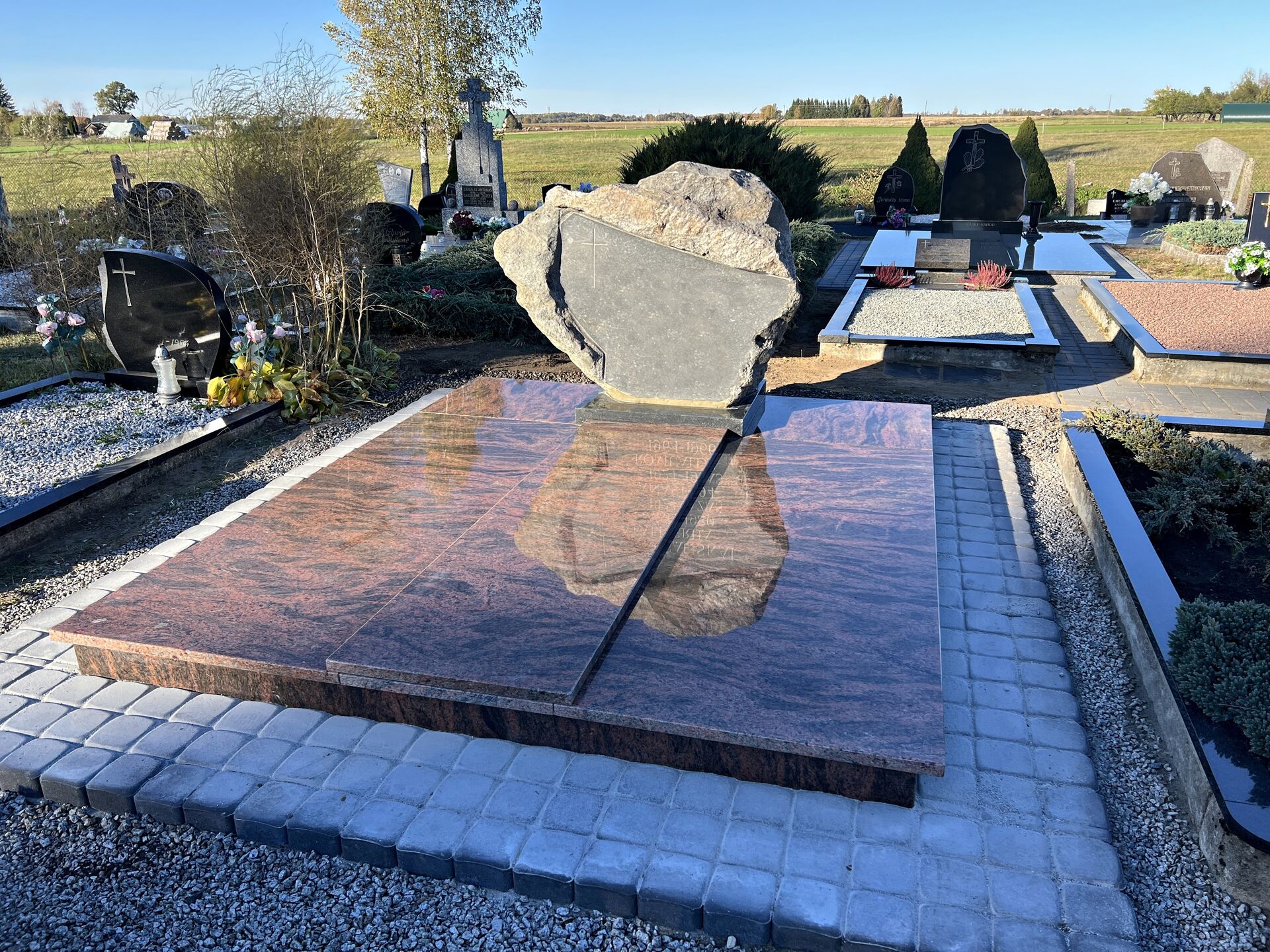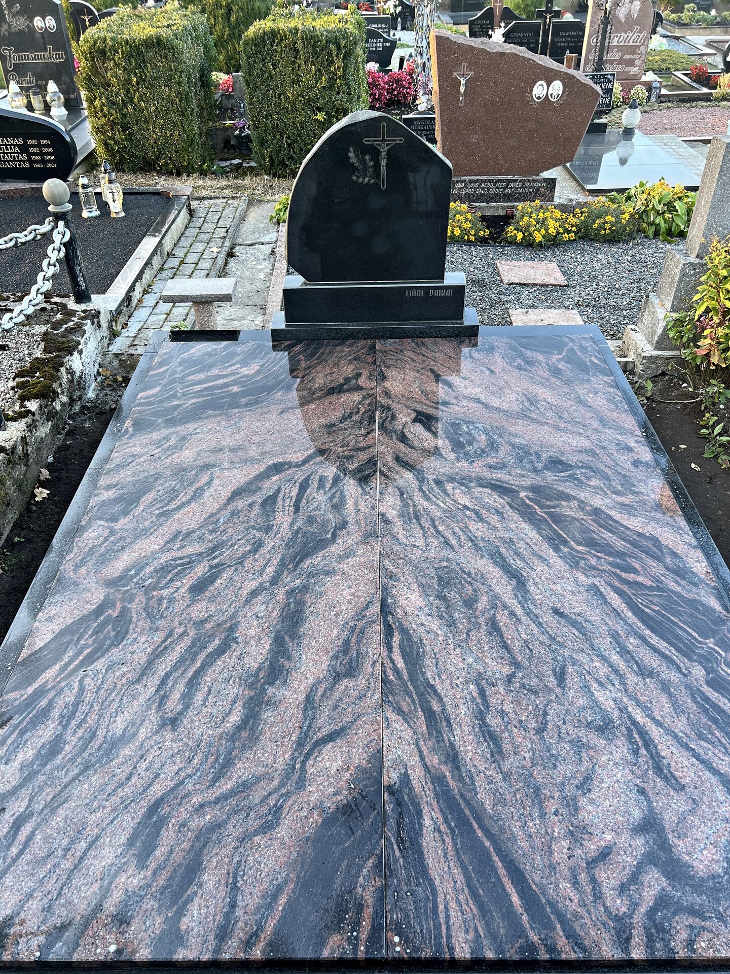 Granitas yra natūralus, itin tvirtas ir atsparus aplinkos poveikiui akmuo, todėl ilgus metus išlaiko estetiką ir stabilumą. Toks sprendimas leidžia kapavietei išlikti tvarkingai, ilgaamžei ir nereikalaujančiai sudėtingos priežiūros.